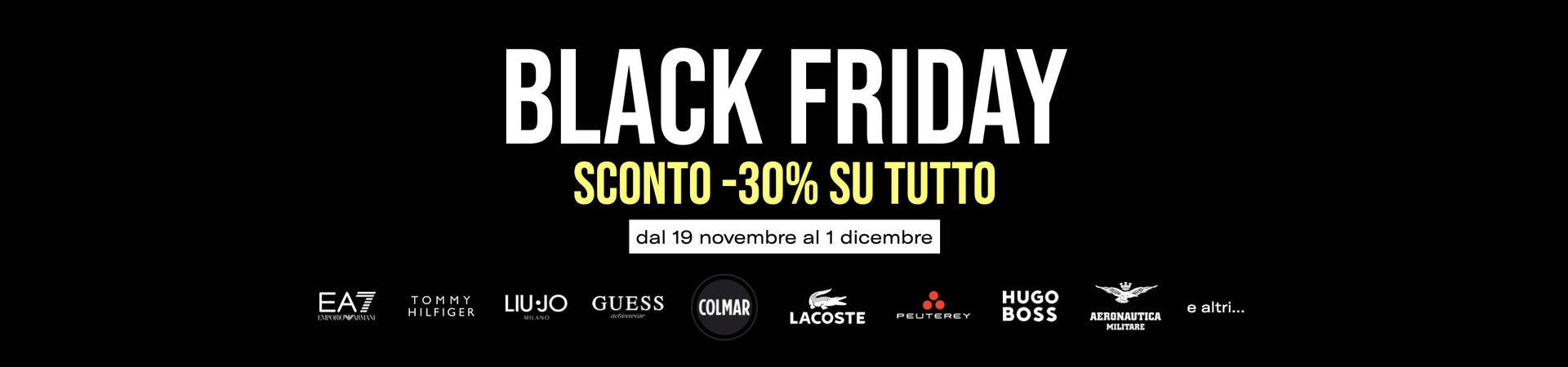 Sconti, promozioni, estrazioni (e molto altro…) si avvicenderanno in questa’occasione per tingere di nero il venerdì più atteso dell’anno da tutti gli amanti dell’abbigliamento sportivo e fashion! Felpe, tute, sneakers, piumini…ti aspettano questi e molti altri prodotti dei brand più cool del momento (Lacoste, Emporio Armani EA7, Blauer, Liu-Jo, Colmar, Blauer, Yes Zee, Tommy Hilfiger…): nessuno potrà rimanere a mani vuote durante quello che sarà il Black Friday Abbigliamento più folle degli ultimi anni.
