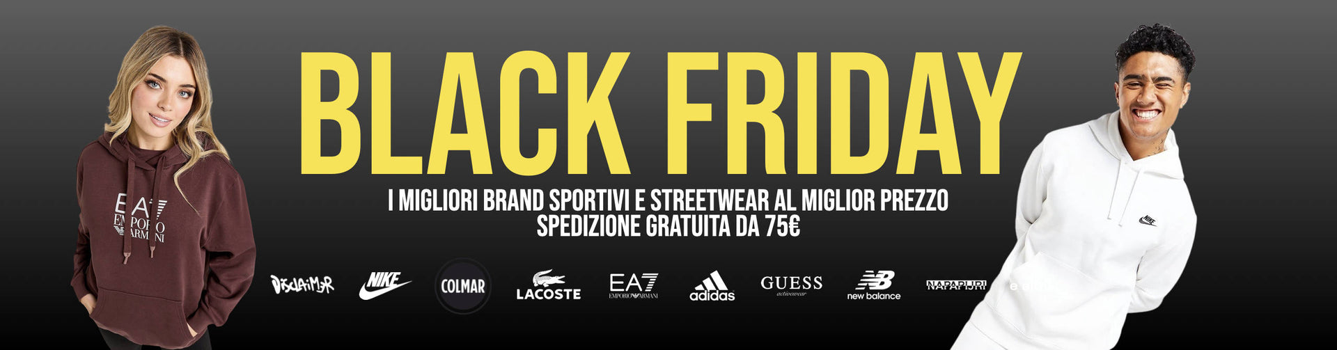 Sconti, promozioni, estrazioni (e molto altro…) si avvicenderanno in questa’occasione per tingere di nero il venerdì più atteso dell’anno da tutti gli amanti dell’abbigliamento sportivo e streetwear! Felpe, tute, sneakers, piumini…ti aspettano questi e molti altri prodotti dei brand più cool del momento (Lacoste, Nike, Fila, Champion, Colmar, Blauer, Yes Zee, EA7…): nessuno potrà rimanere a mani vuote durante quello che sarà il Black Friday Abbigliamento più folle degli ultimi anni.